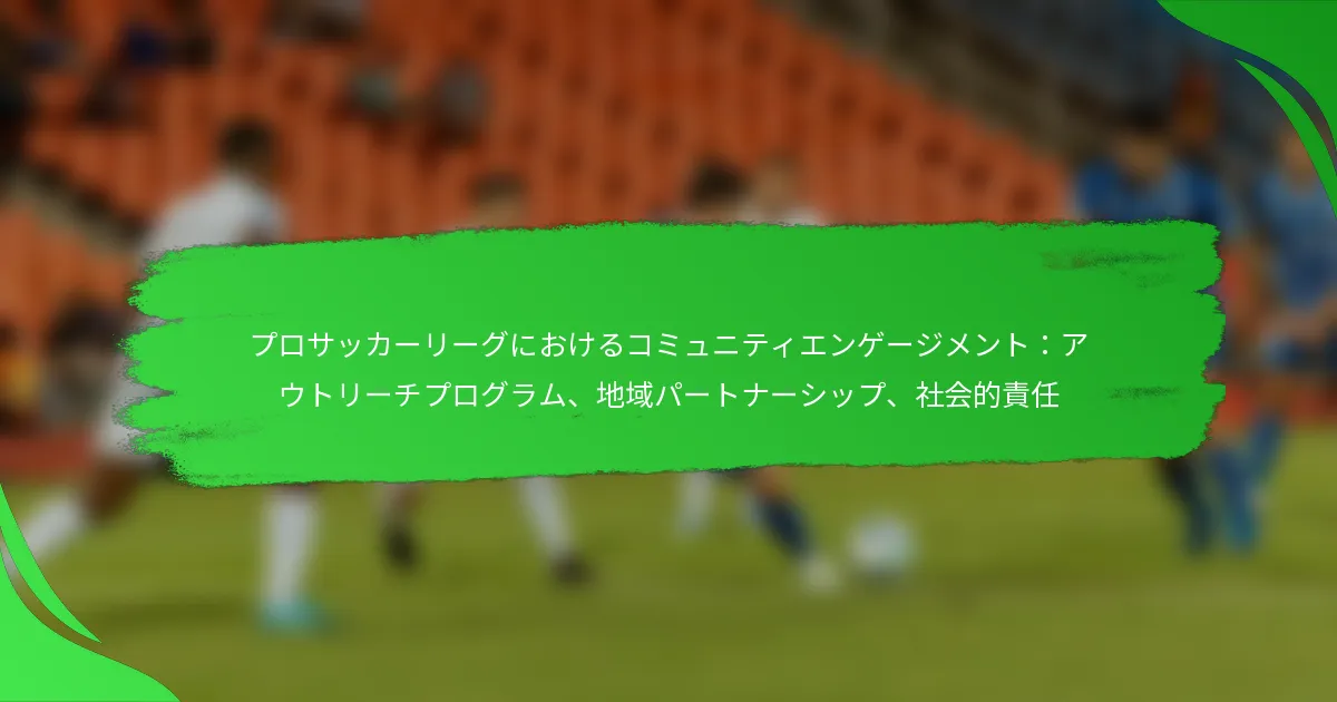 プロサッカーリーグは、さまざまなアウトリーチプログラムや地域パートナーシップを通じて、コミュニティとの関わりにおいて重要な役割を果たしています。教育、健康、社会的責任に焦点を当てることで、これらの取り組みはチームと地域組織との協力を促進し、ファンや参加者の両方にポジティブな影響を与えます。最終的に、これらの努力はリーグの評判を高め、緊急の社会問題に対処し、彼らがサービスを提供するコミュニティ内の多様性を促進します。