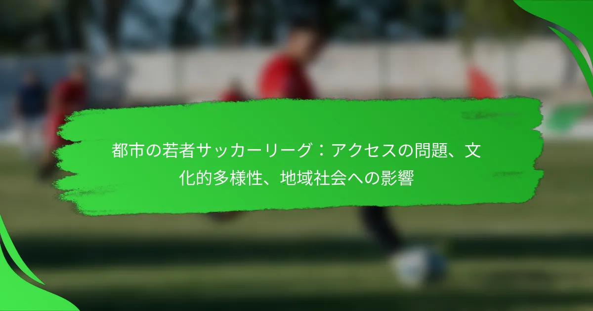 都市のユースサッカーリーグは、地域社会の関与を促進し、多様な文化的背景を持つ人々の間で包括性を推進する上で重要な役割を果たしています。しかし、経済的障壁や交通の課題などのアクセスの問題が参加を妨げ、これらのリーグが提供する発展的な利益を制限することがあります。これらの障害に対処することで、地域社会は若者のエンパワーメントを高め、より安全でつながりのある近隣を作り出すことができます。